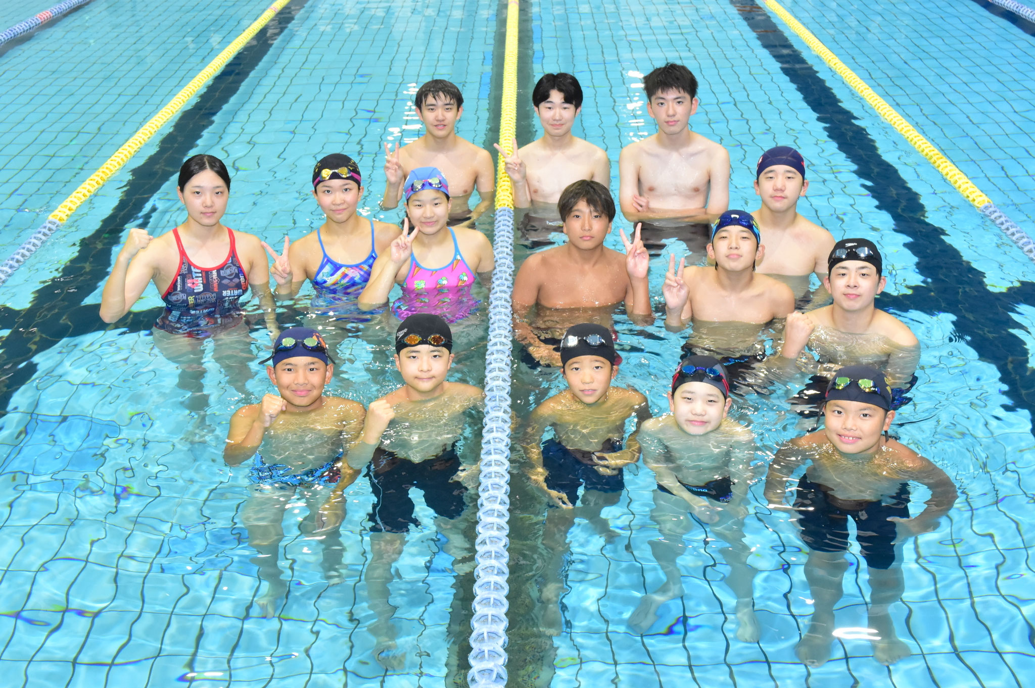 コーチや同じ目標を持つ仲間たちと競い合いながら、自身の泳力向上を目指していきます。